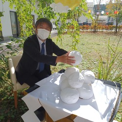 大きなお月見団子についつい手が出てしまう施設長です笑