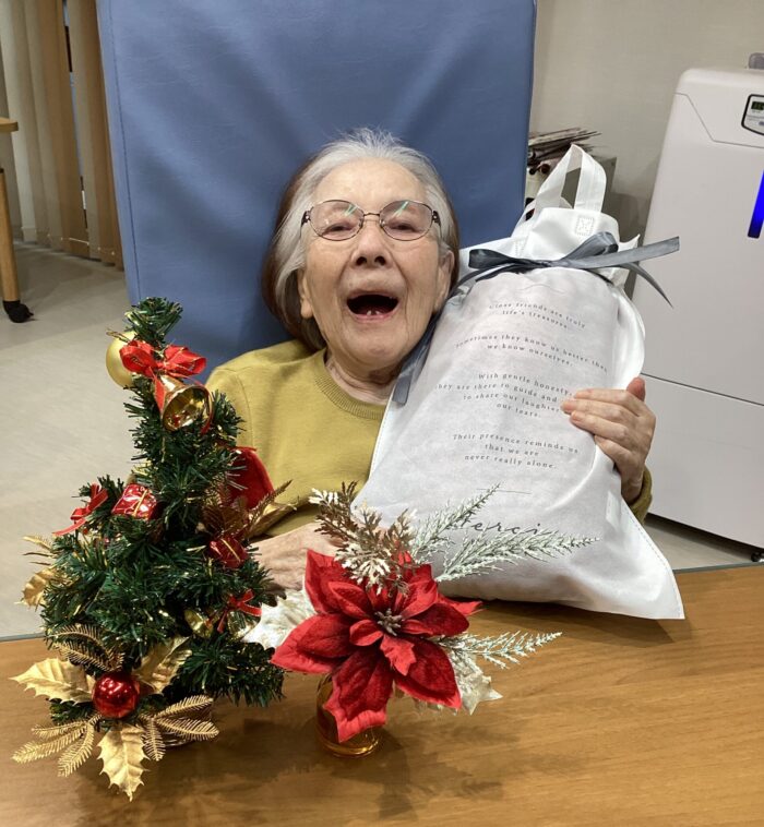 昨年のクリスマス、みずきユニットでは、日頃の感謝の気持ちを込めて、ユニットからご利用者様へささやかなプレゼントをお渡ししました🎁。一つひとつ手渡しする中で、「ありがとう」「嬉しいね」といった温かい言葉や、自然とこぼれる笑顔が見られ、ユニット全体がやさしい空気に包まれた時間となりました😊